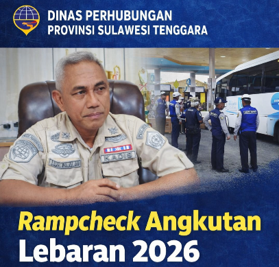 KENDARI, Kongkritsultra.com- Dalam rangka memastikan keselamatan, keamanan, dan kelancaran penyelenggaraan Angkutan Lebaran 2026 (1447 Hijriah), Dinas Perhubungan Provinsi Sulawesi Tenggara menggelar inspeksi keselamatan lalu lintas dan angkutan jalan (rampcheck) di Terminal Tipe A Puuwatu, Selasa (24/2/2026).